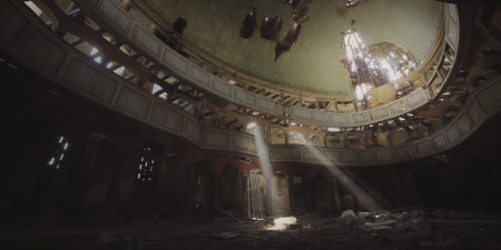 Director Patryk Kizny shows us – once more – aesthetically pleasing visuals in his latest short „REBIRTH„. Already known for turning high-dynamic range (HDR) imagery captured in historic buildings into a stunning piece of art with his earlier short film „The Chapel“, Patryk returns to the screens with a larger project that integrates both LiDAR and HDR images. His new 14 minute short film can be watched online via this link. Below a few still images from the beautiful movie to make sure you really watch it … (-: … turn on the audio for narration and soundtrack. There used to also be a neat timelapse video about the „scanning of the temple“ by EKG Baukultur with a Faro scanner.