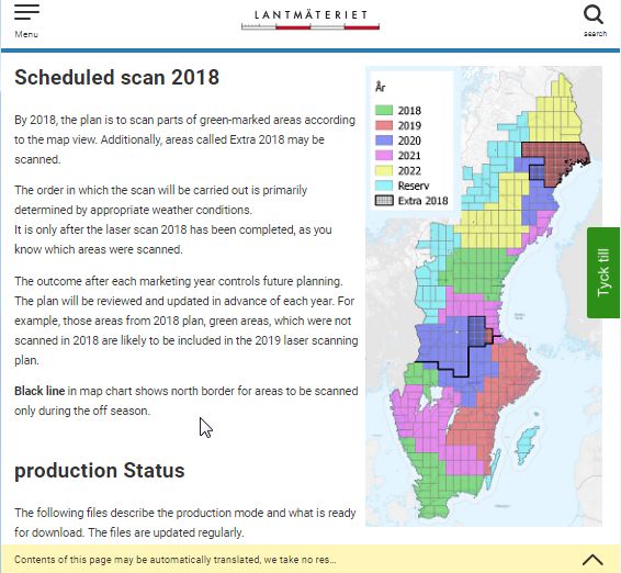 The LiDAR data will eventually cover approximately 75% of Sweden and new point clouds will continuously be added as additional scanning is performed according to the schedule shown below. The survey will be returning to scan every spot again after about 7 years.