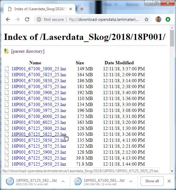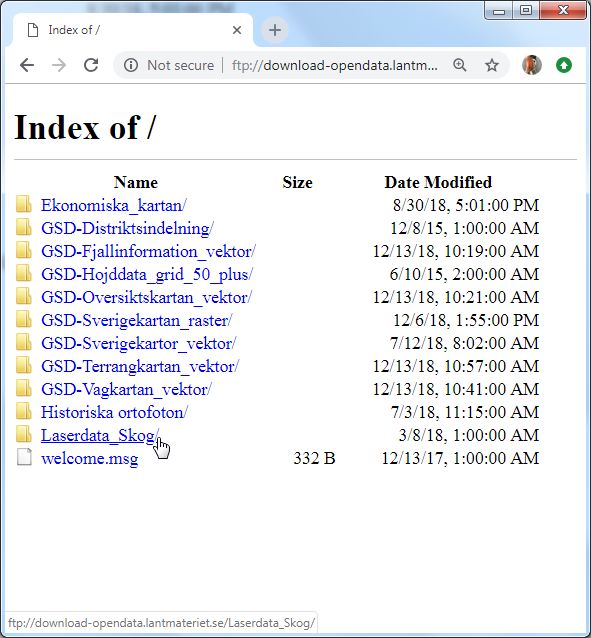 Turns out we were correct after all. Sweden has just opened their LiDAR data for free and unencumbered download. To get the data simply create a user account and browse to the ftp site for download as shown in the image sequence below.
