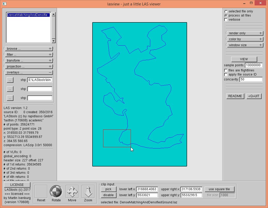 lasindex -i DenseMatchingAndDensifiedGround.laz lasview -i DenseMatchingAndDensifiedGround.laz -gui
