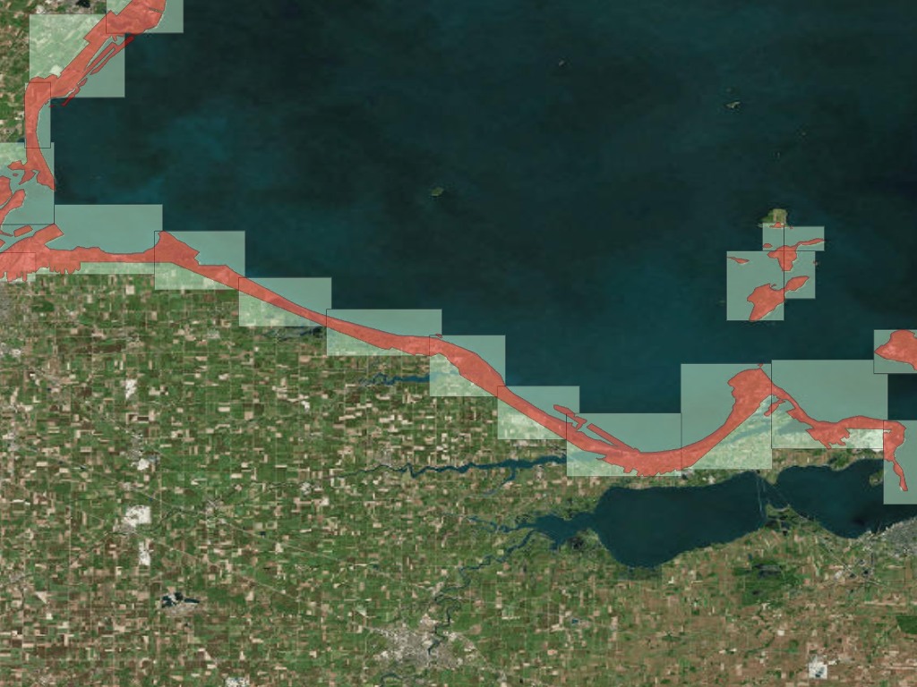 Lake Erie is the Southern most of the Great Lakes and it is shared by 4 states and 2 countries. It is the shallowest, warmest, and most biologically productive of all the Great Lakes. At wetland habitats along the Western Lake Erie coast, more than 300 species of plants have been identified. To study land use and to classify vegetation cover it is important to consider the vertical distribution of the vegetation. LiDAR is an active data collection system for generating 3D spatial information of objects. High-resolution Digital Terrain Models (DTMs) and Digital Surface Models (DSMs) can be generated from the available LiDAR points that allow accurate estimates of canopy height.