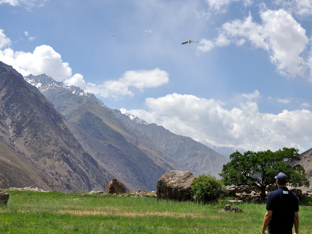 A first UAV (unmanned aerial vehicle) mission has taken place in the Darjomj watershed of the Bartang valley in July 2016. RGB-NIR images as well as a high-resolution Digital Surface Model have been produced that now need to be segmented and analysed in order to produce comprehensive information. The main processing that will take advantage of LAStools is the generation of a DTM from the DSM that will then be used for identifying risk areas (flood zones, landslides and avalanches, etc.). The results of this approach will ultimately be compared with lower-cost satellite images (RapidEye, Planet, Sentinel).