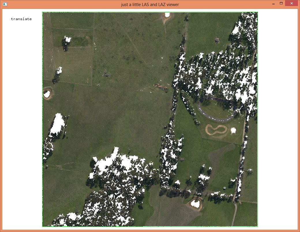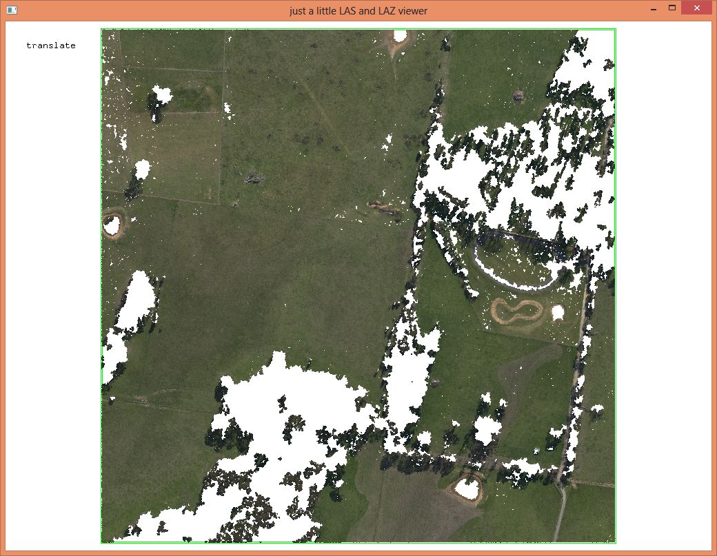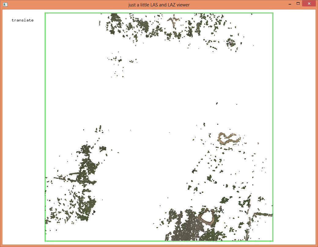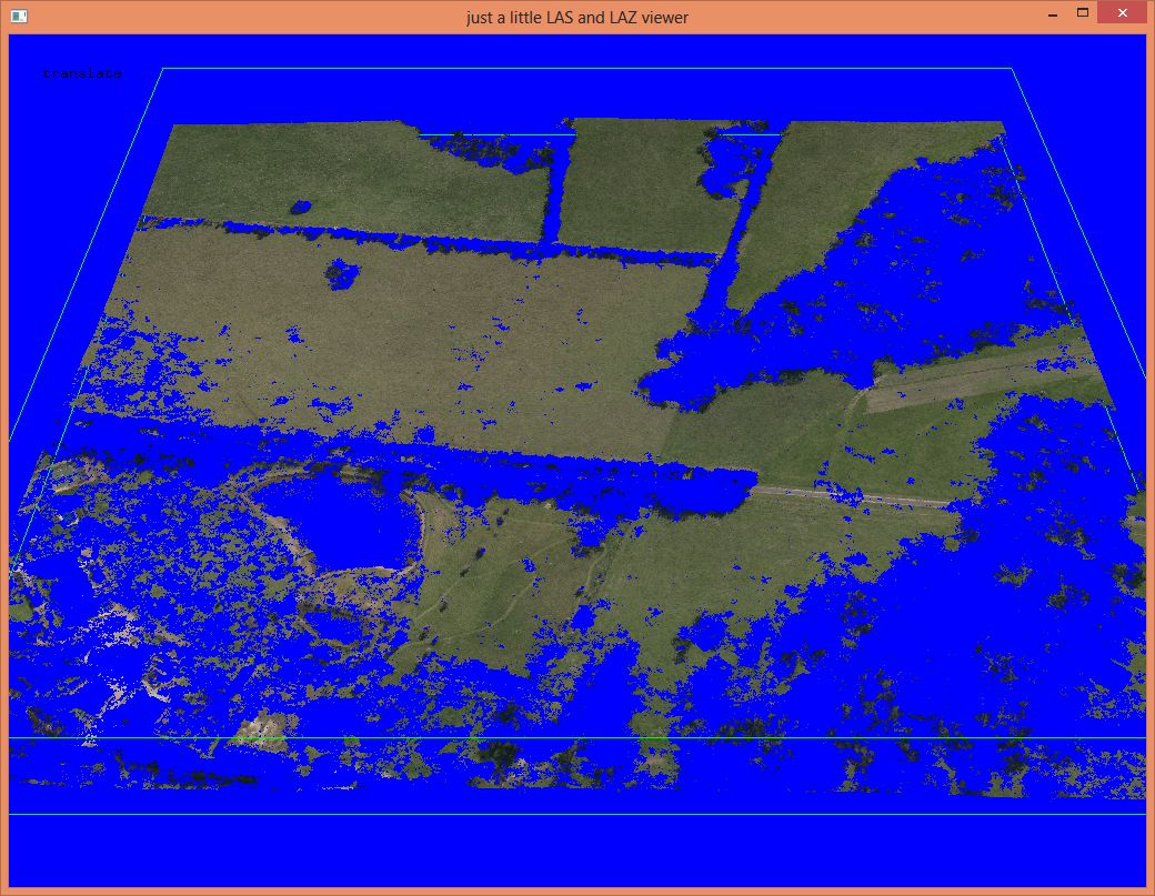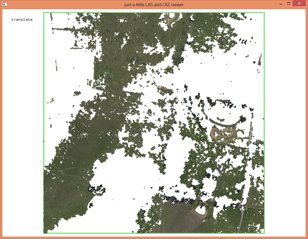 Finally, a word on compression: lowering the coordinate resolution to centimeters, sorting the points of every tile into a coherent spatial order, and merging the tiles back into one, results in a ‚macmahanfarm_cm.laz‘ file that is only 0.56 GB: less than half the size of the ‚macmahanfarm.laz‘ file we obtained from Pix4D. Now the LASzip compression ratio is 1:8.