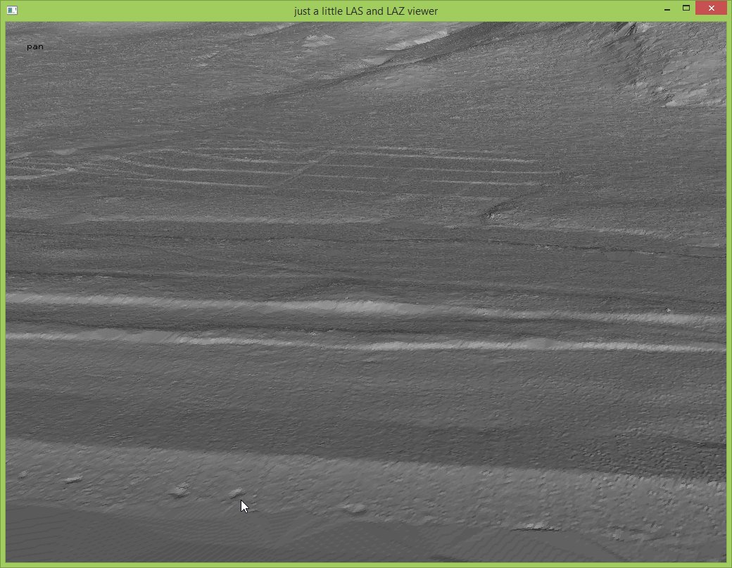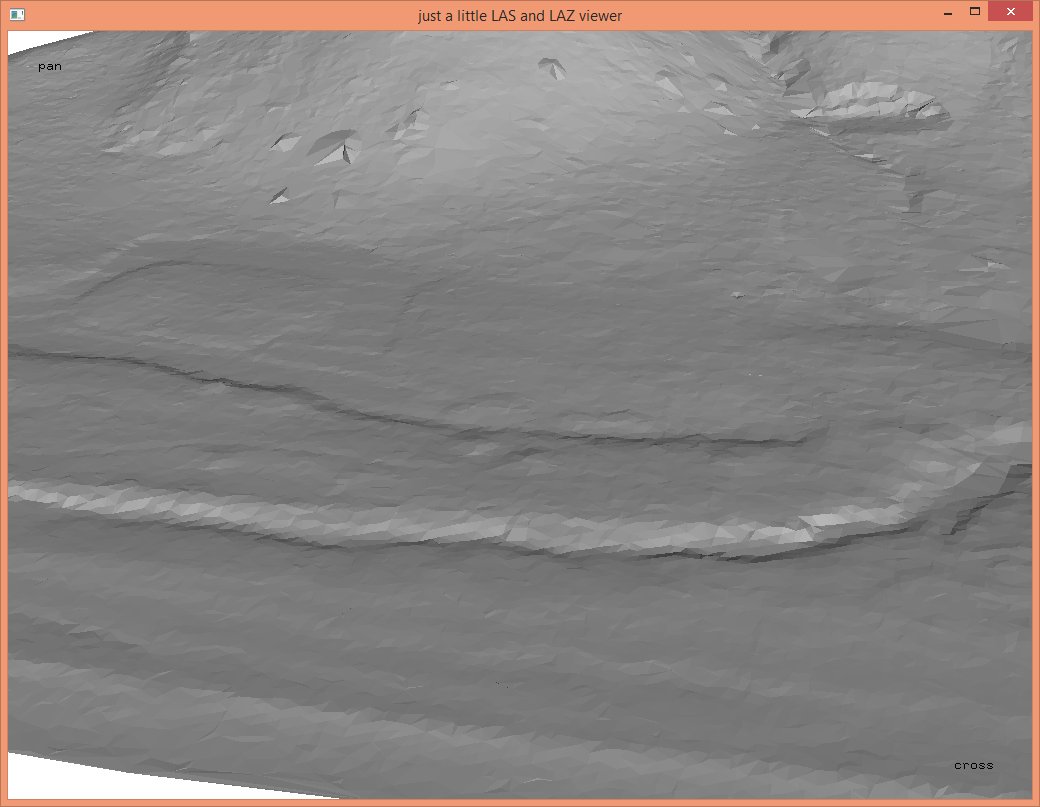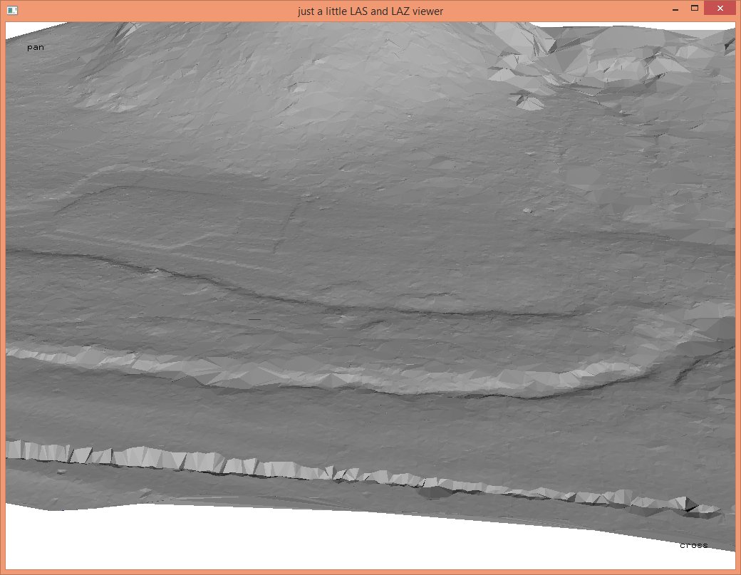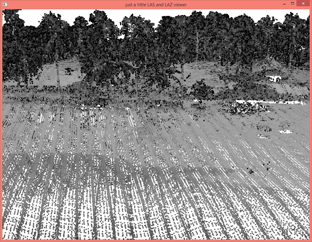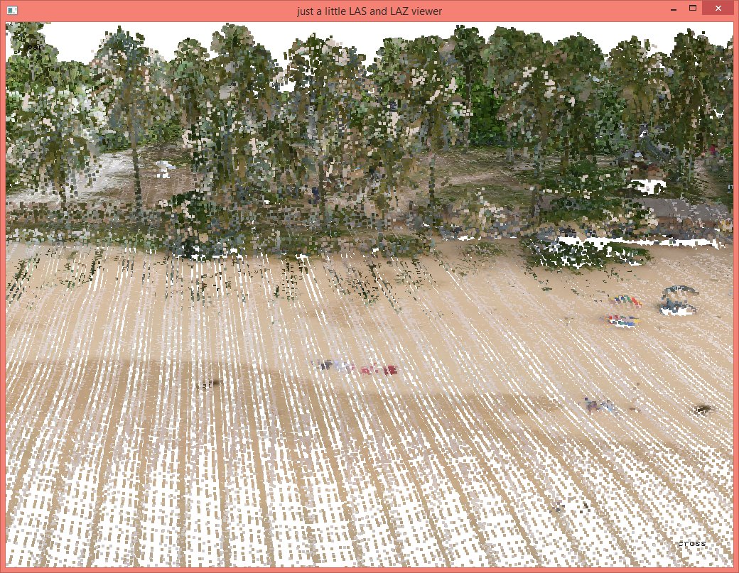 In these steps we implicitly reduced the resolution that each coordinate was stored with from quarter-millimeters (i.e. scale factors of 0.00025) to the default of centimeters (i.e. scale factors of 0.01) which should be sufficient for subsequent vegetation analysis. The LAZ files also compress better when coordinates a lower resolution so that the ‚lalutaya_utm.laz‘ file is over 200 MB smaller than the original ‚lalutaya.laz‘ file. The quantization error this introduces is probably still below the overall scanning error of this helicopter survey.