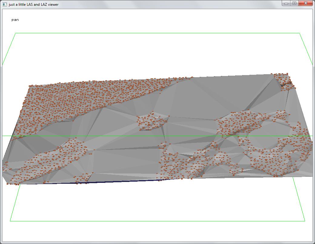 Then we use lasheight to classify all points that are 20 cm or more below the triangulated surface of temporary ground points as points as noise (7) and all others as unclassified (1).